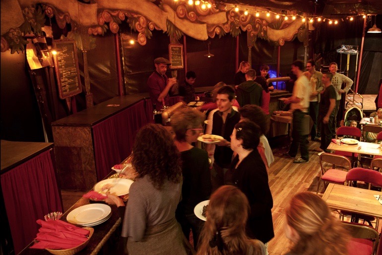 Déjà le lieu vous met dans l’ambiance, tout se passe sous le chapiteau de cirque au look baroque, où l’on retrouve les classiques du brunch : crêpes, bacons, œufs brouillés, charcuteries, jus de fruit, viennoiseries… Il ne faut pas oublier aussi la fine équipe du Baron qui vous accueille avec charme et sourire.
