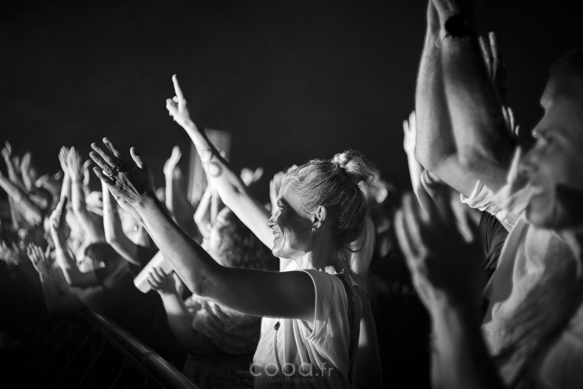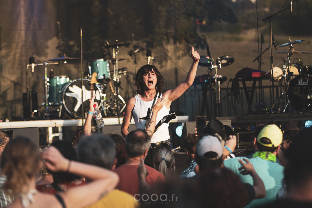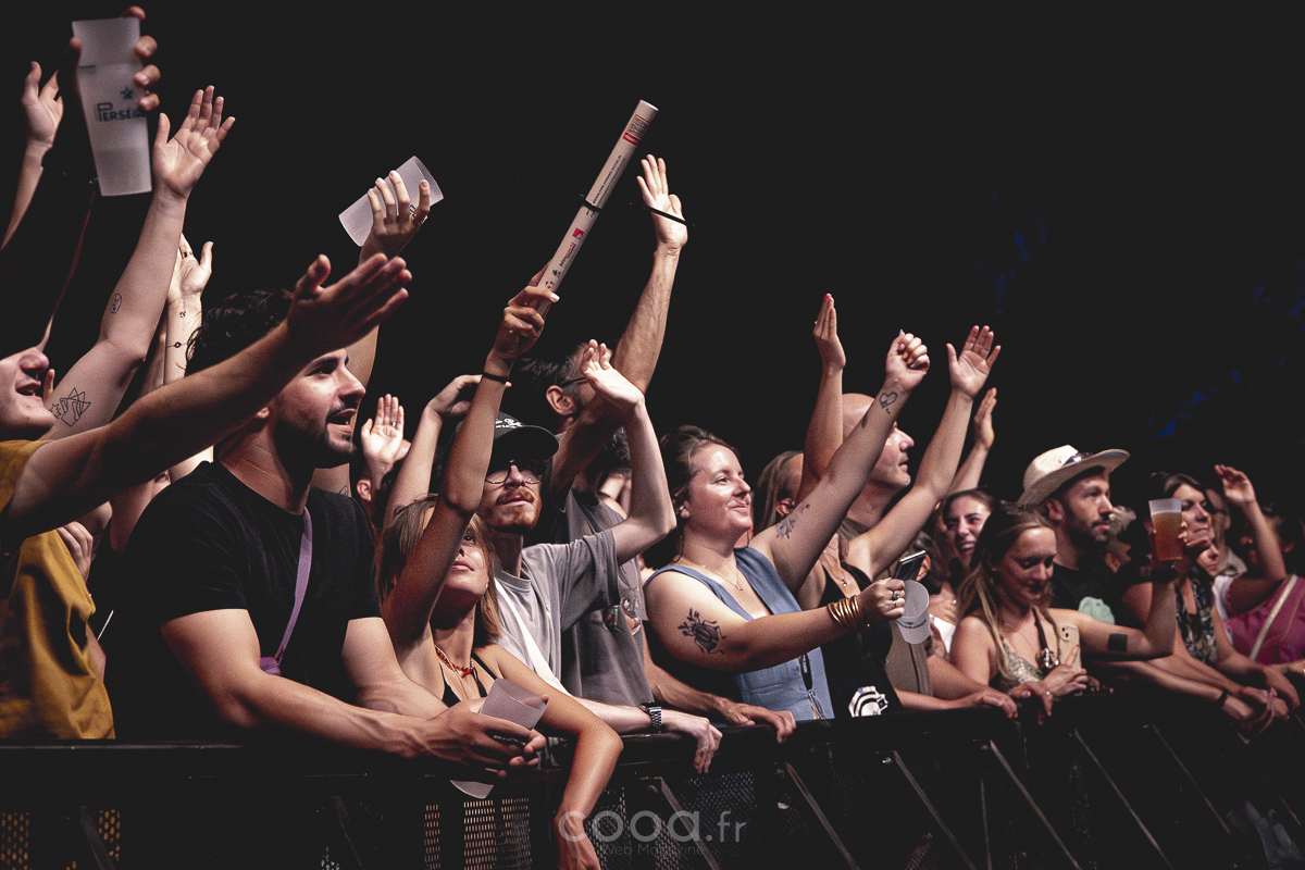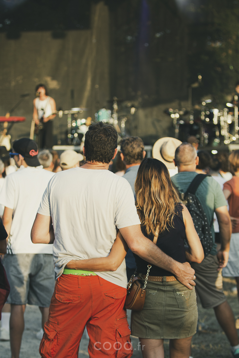 À 18 heures vendredi, le thermomètre affichait encore 38 °C à l’ombre. Les premiers spectateurs, venus souvent en famille ou entre amis, ont attendu la tombée du jour pour se rapprocher de la scène. L’ambiance, d’abord étouffée par la chaleur, a fini par décoller à mesure que les guitares électriques et les synthés emplissaient l’air du domaine des Clévos.