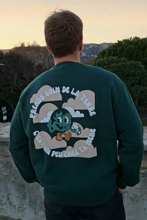 Mention spéciale au sweat Daronne, vert bouteille, doux et protecteur, qui rappelle deux vérités simples : on n’a qu’une planète et qu’une mère. Et les deux méritent le plus grand soin.