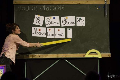 Le jeudi 3 mai, Marion et David ont réalisé un spectacle en deux parties. La première partie était un concert de reprises de diverses chansons par deux classes de Bourg-lès-Valence avec Marion et David à la baguette, et respectivement au piano et à la guitare. Ensuite, pour la première fois, ils purent jouer le spectacle issu de « Et bien chantez maintenant » devant les enfants, qui furent enthousiasmés par les chansons et par le jeu de scène des deux artistes. Mais ce spectacle n’a pas plu seulement aux enfants ; les parents et autres adultes présents ont également beaucoup apprécié ce spectacle amusant et intelligent.