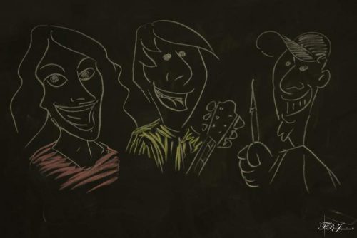 Le mercredi 2 mai fut l’occasion de présenter leur nouveau projet : le livre-disque « Et bien chantez maintenant » devant les partenaires. Il s’agit d’un album, fruit de 3 ans de travail, écrit par les élèves des classes dans lesquelles Marion et David interviennent pour faire des ateliers d’écriture de chansons, à partir d’expositions que ces élèves visitent aux Clévos. Ces 11 chansons réalisées se retrouvent dans un livre-disque illustré par Pierre Armand qui était également là pendant ces 4 jours pour croquer sous forme de caricatures les personnes le souhaitant.