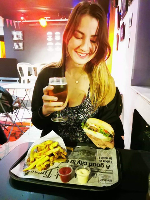 L’ambiance street art est décontractée et vraiment sympa et on nous installe directement près du chauffage ( il me connaissent déjà on dirait ? XD ). Il y’a une bonne sélection de cocktails qui m’attire l’œil mais finalement le combo bière/burger me parait être un bon choix.