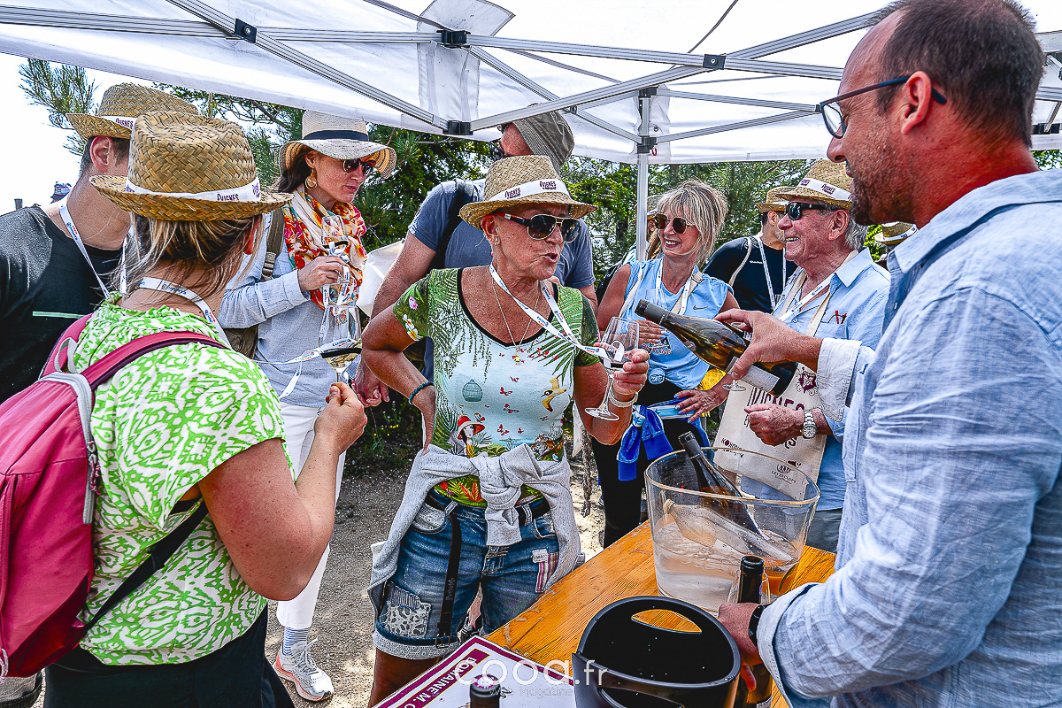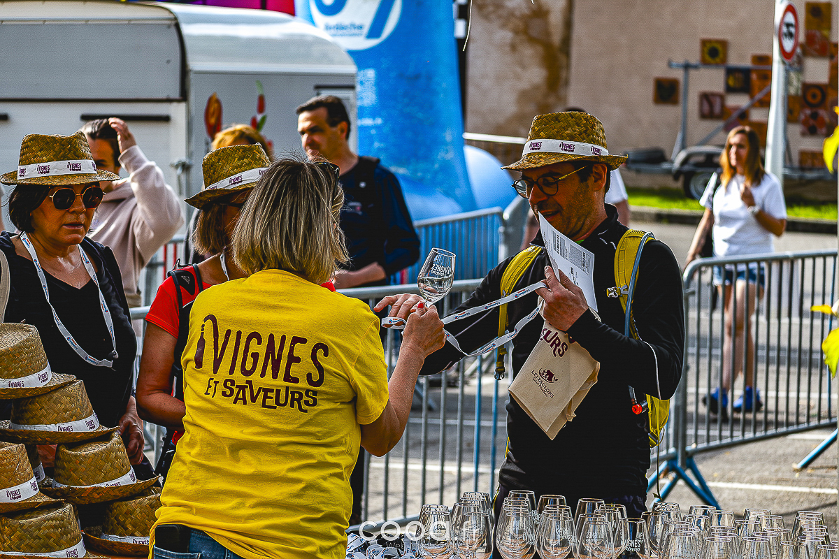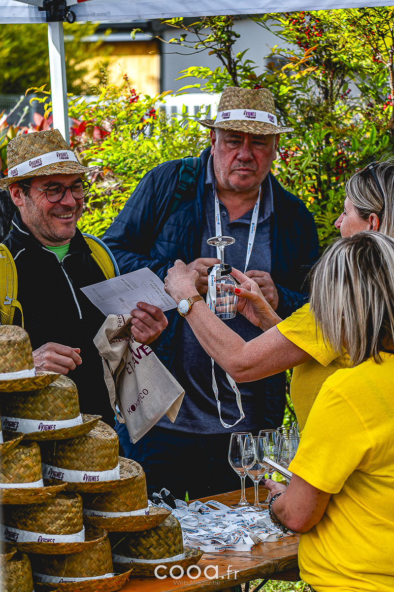 Le départ, donné dès 9h au CEP du Prieuré, a lancé les groupes de marcheurs sur un parcours de 7 km, ponctué de haltes gourmandes mêlant vins, mets du terroir et rencontres avec des producteurs passionnés. Équipés d’un pack d’accueil (verre, chapeau, tote bag, roadbook), les participants ont savouré chaque étape, entre dégustations de vins (blancs fruités, rouges corsés) et bouchées locales, dont des verrines raffinées préparées par un chef invité.