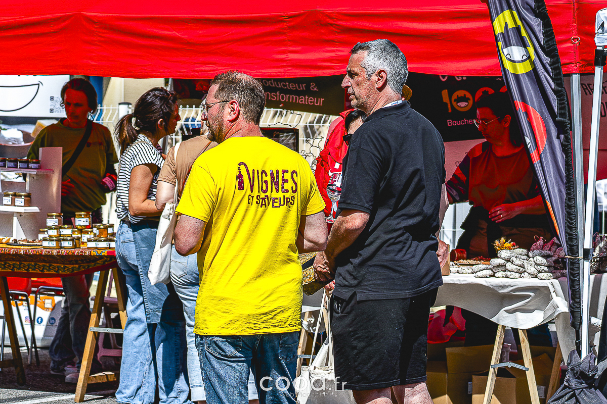 Le Village des Producteurs, installé en continu au CEP du Prieuré. Une dizaine d’artisans de la Drôme et de l’Ardèche y proposaient à la vente et à la dégustation fromages, charcuteries, douceurs sucrées et vins locaux, dans une ambiance musicale assurée par Mr Jules en DJ set.