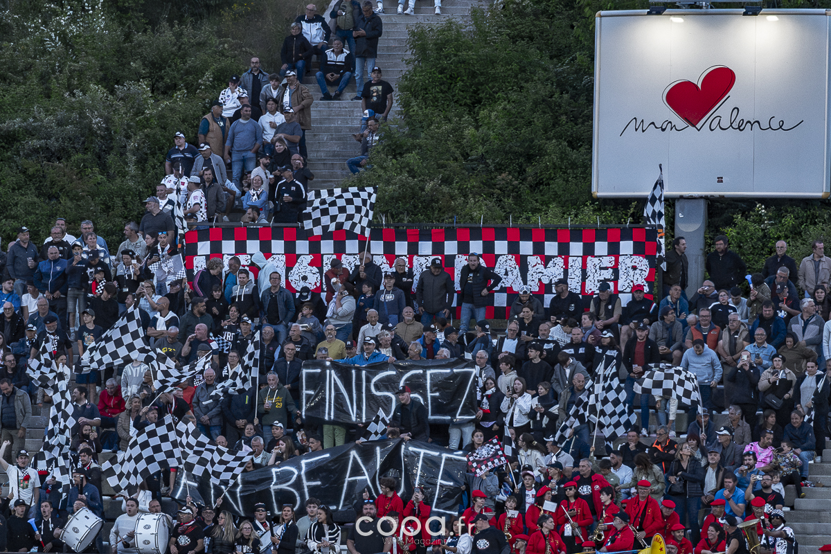 Ils étaient plus de 8000 à garnir les tribunes pour ce dernier rendez-vous de la saison. Et ils n’ont pas été déçus. Dès les premières minutes, Anatole Pauvert ouvrait le score sur une belle combinaison, rapidement transformée par Lucas Meret (7-0, 2e). Quelques minutes plus tard, alors que Meret écopait d’un carton jaune, les Drômois, bien en place, continuaient de dominer les débats, portés par une ambiance exceptionnelle.