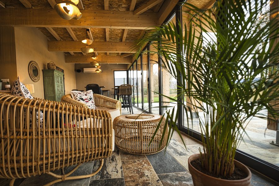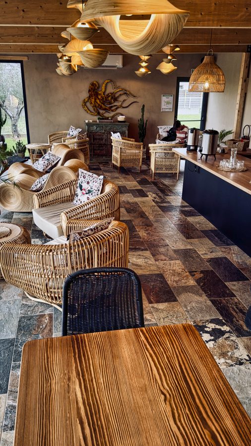 La tisanerie de Nature d’Eau offre un havre de détente où l’équilibre entre la nature et le bien-être est parfaitement harmonieux. Entre deux soins revitalisants, vous pouvez vous relaxer dans les confortables fauteuils en bambou de chez Hydile, agrémentés de magnifiques coussins Pot de Vache, qui ajoutent une touche ludique et chaleureuse à l’atmosphère. Les grandes baies vitrées encadrent des panoramas de la nature environnante, créant ainsi une immersion totale dans un cadre apaisant. L’ambiance sereine est complétée par l’arôme envoûtant des thés qui vous sont proposés. Cet espace devient ainsi une véritable oasis pour la relaxation.