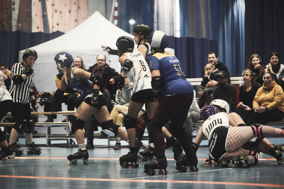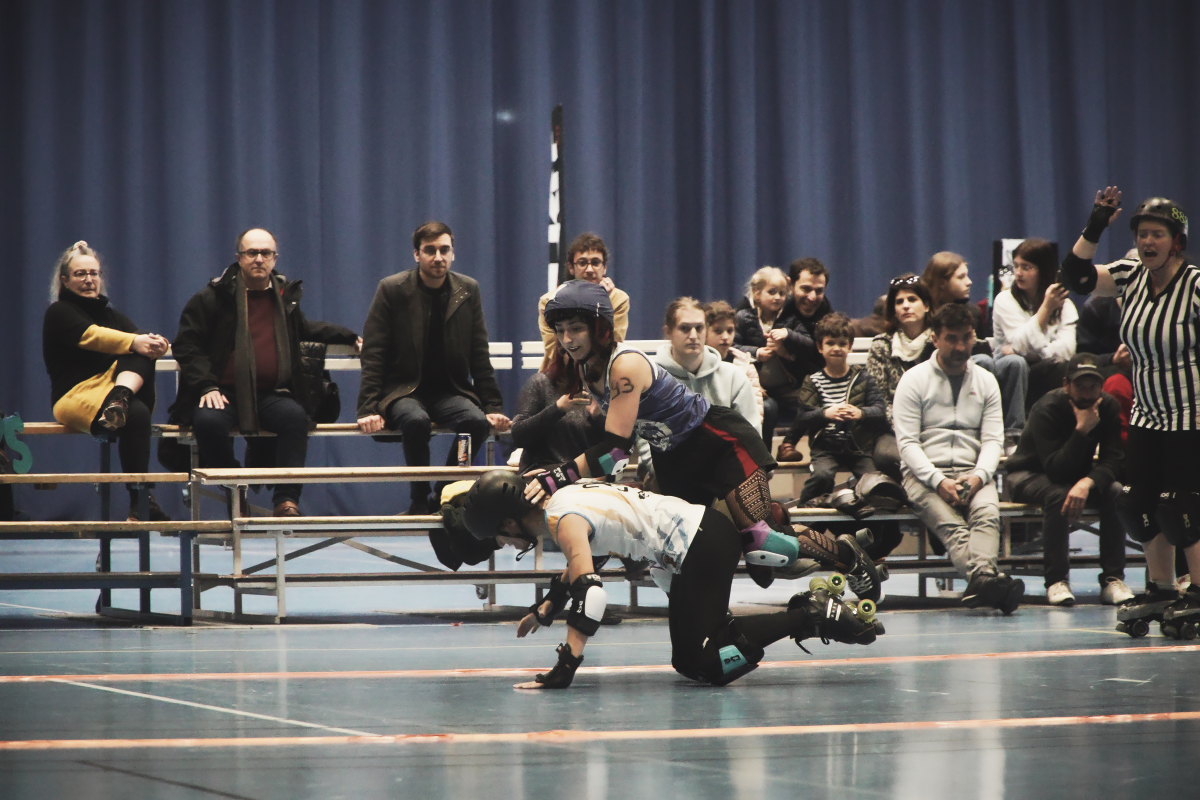 Ce fut intense dans la Halle Chaban Delmas de Valence, avec 3 équipes remontées à bloc qui nous ont offert de belles batailles sur le track et en dehors on a peu découvrir (une bonne bière à la main) des stands d’artisans locaux et même acheter un peu de matos de roller ou tenter sa chance à la tombola.