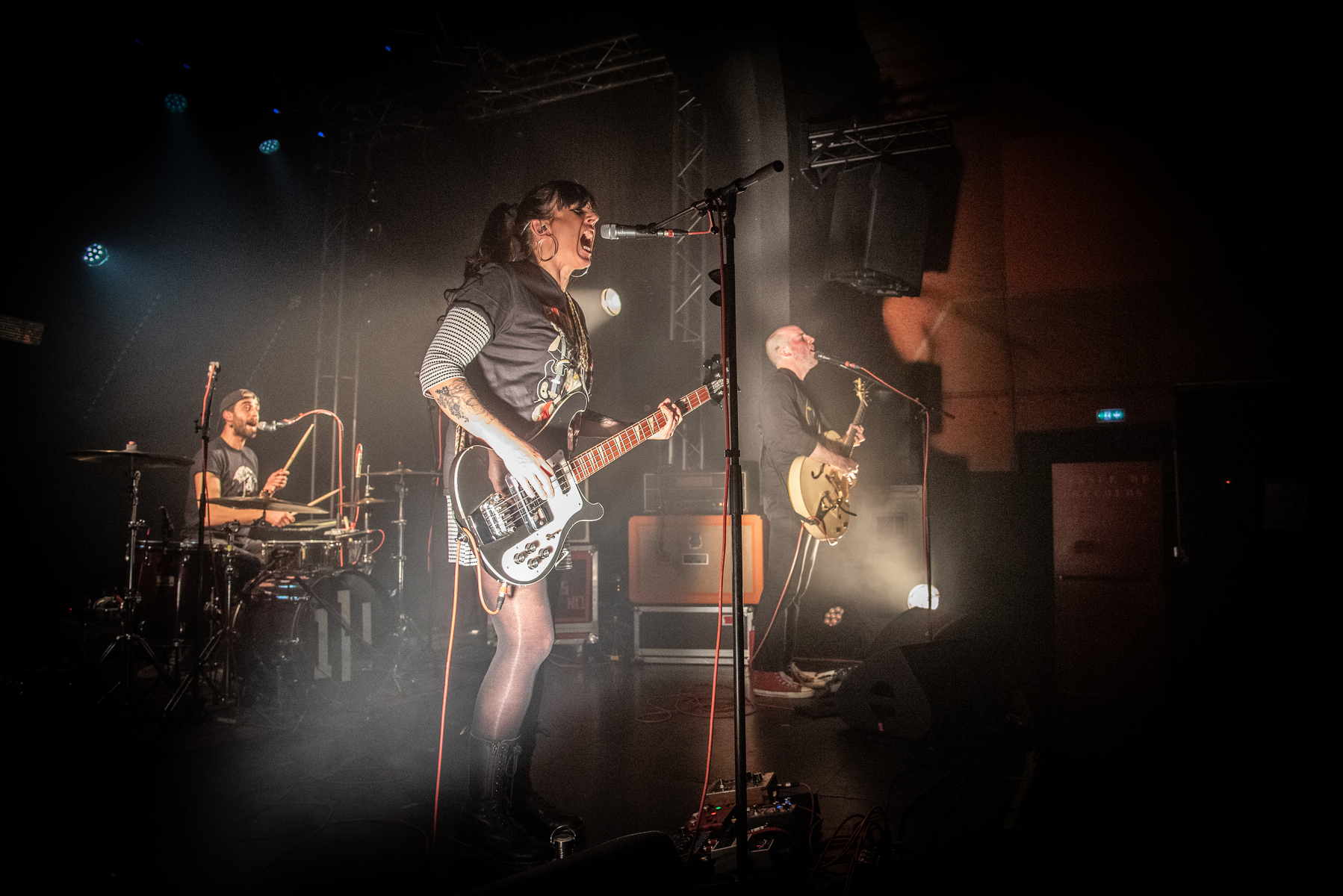 La première partie a été assurée par 111, un trio rock originaire de Lyon formé en 2018. Composé d’Emma Cordenod (chant, guitare, basse), Yvain Poncet (guitare, chœurs) et Jules Barras (batterie), le groupe s’est démarqué par une énergie brute et des textes engagés, abordant notamment les questions d’égalité femmes-hommes. Leur son abrasif et percutant a conquis le public dès les premières notes. Cette prestation marquait également la sortie récente de leur album Oh Wow, paru le 25 février dernier.