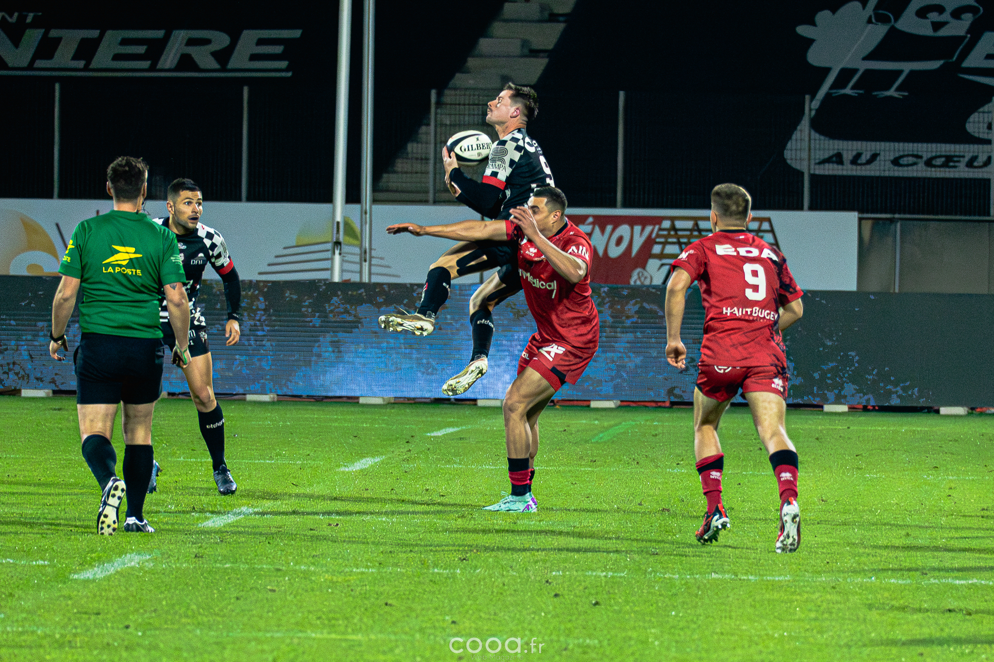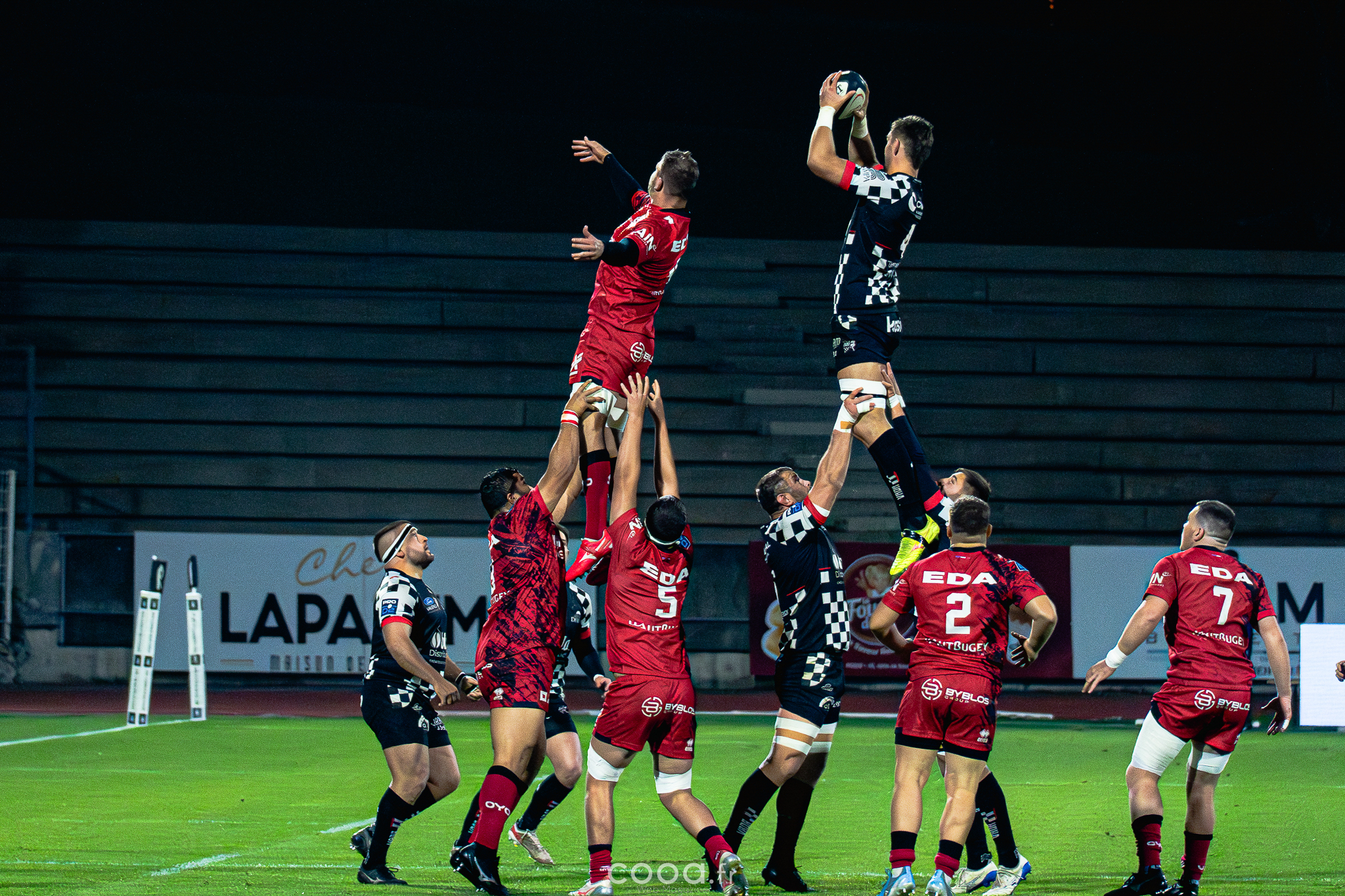Oyonnax a continué d’insister, mais des ballons volés en défense et une pénalité manquée par Smith ont maintenu les damiers en tête. L’éclair final semblait arriver avec Le drop de la victoire, signé Chris Smith pour Oyonnax, avait pourtant semblé sceller le sort du match. Mais après arbitrage vidéo, l’action a été annulée pour un hors-jeu au départ, offrant aux Damiers une délivrance inespérée.