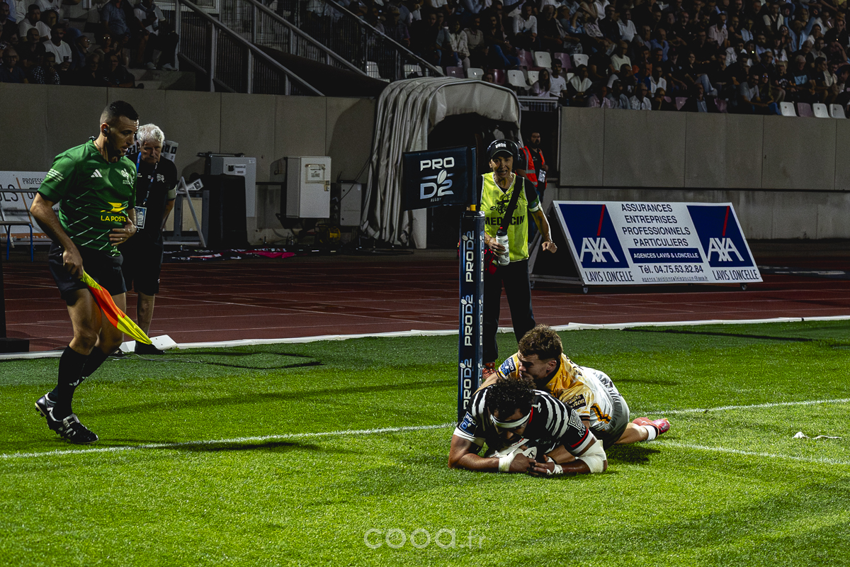 Au retour des vestiaires, la mêlée et la puissance drômoise ont fait la différence. Spanderashvili, Idoumi puis Joris Moura ont enchaîné les essais, permettant au VRDR de décrocher le bonus offensif. Impeccable au pied, Lucas Méret a transformé toutes les tentatives et ajouté une pénalité.