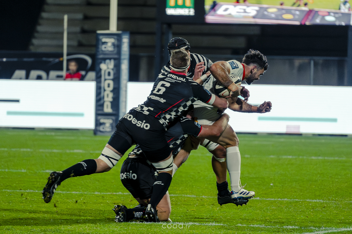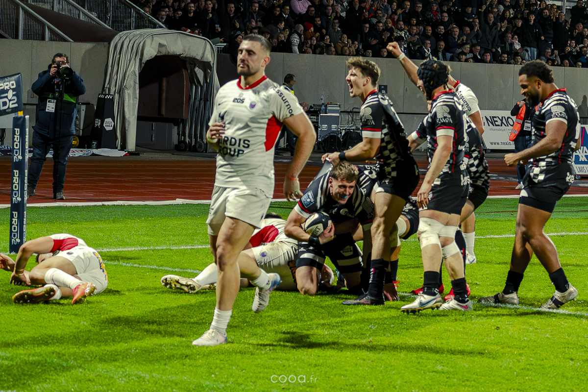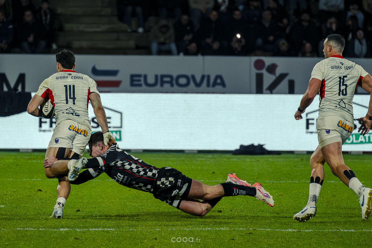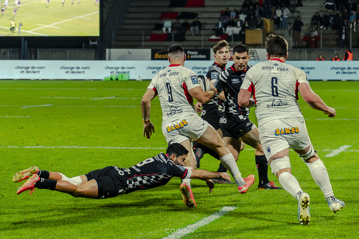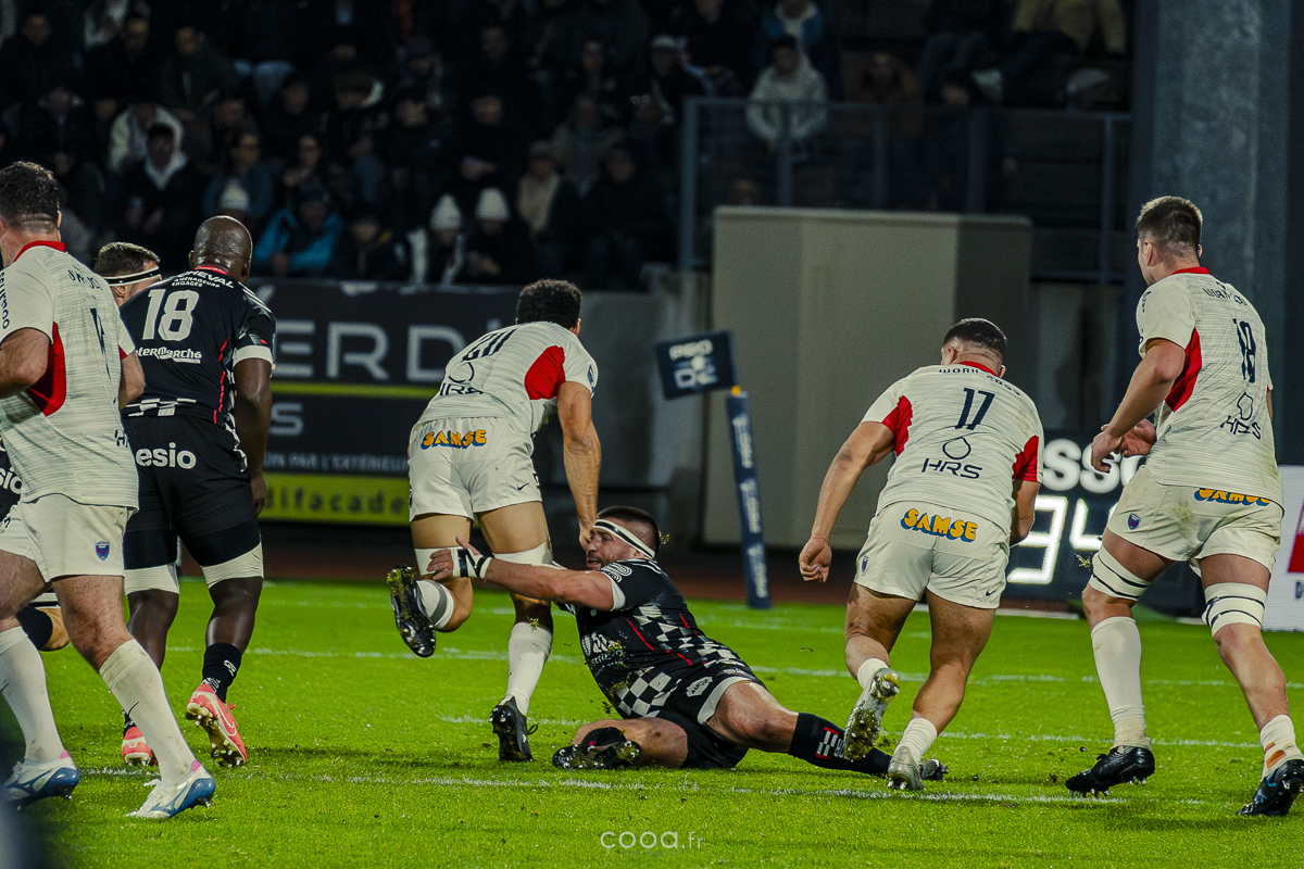 Même si Grenoble réduisait l’écart à la 49e minute grâce à un essai en force signé Sirgel, les Damiers n’ont jamais tremblé. Au contraire, Lucas Méret ajoutait trois points supplémentaires à la 54e minute, puis Randle, entré en jeu quelques minutes plus tôt, inscrivait un essai monstrueux à la 58e minute, traversant quatre défenseurs pour porter le score à 26-15 malgré une pénalité grenobloise précédente.