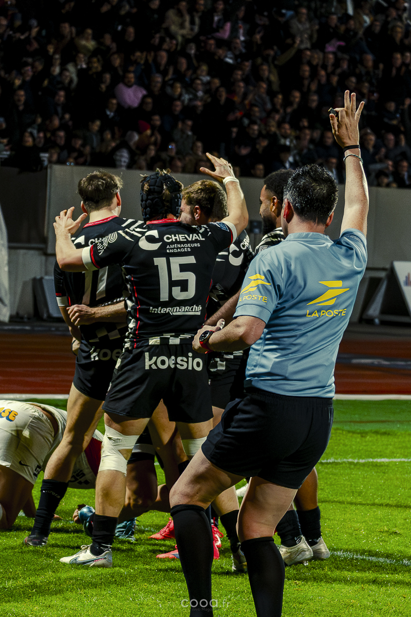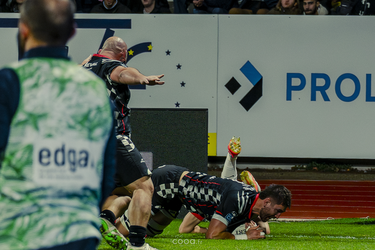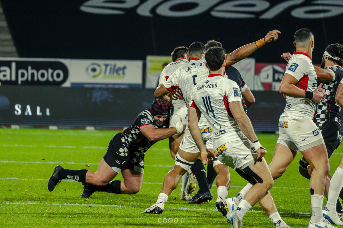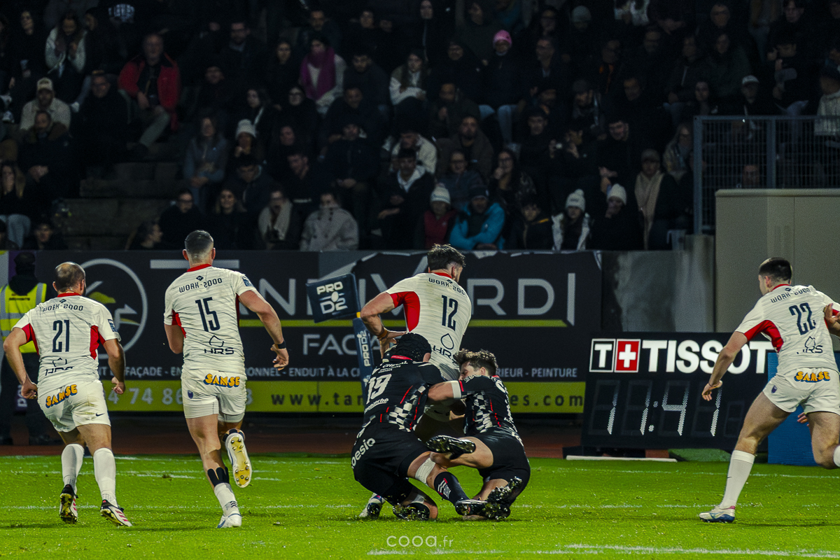 Même si Grenoble réduisait l’écart à la 49e minute grâce à un essai en force signé Sirgel, les Damiers n’ont jamais tremblé. Au contraire, Lucas Méret ajoutait trois points supplémentaires à la 54e minute, puis Randle, entré en jeu quelques minutes plus tôt, inscrivait un essai monstrueux à la 58e minute, traversant quatre défenseurs pour porter le score à 26-15 malgré une pénalité grenobloise précédente.