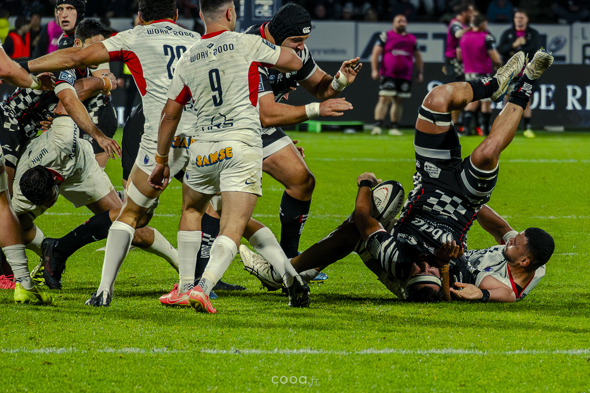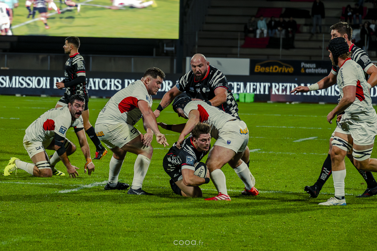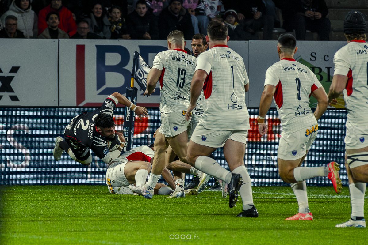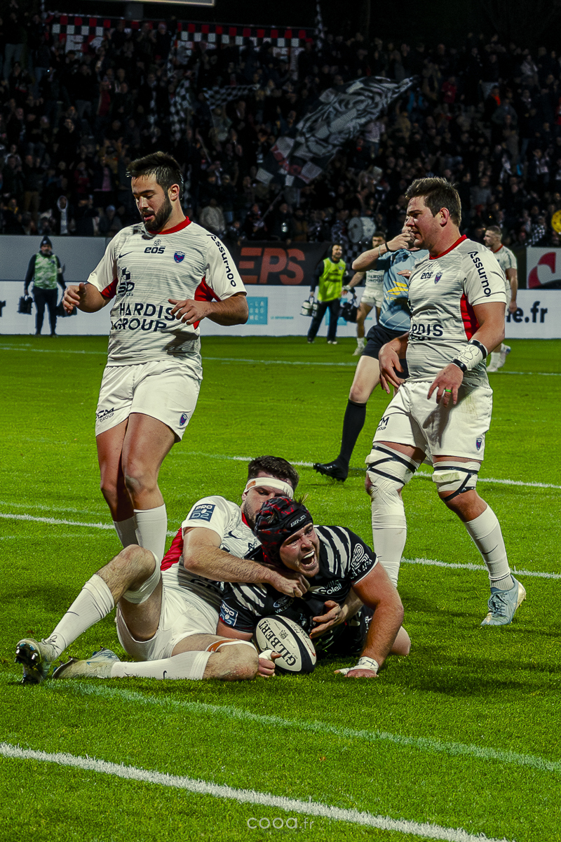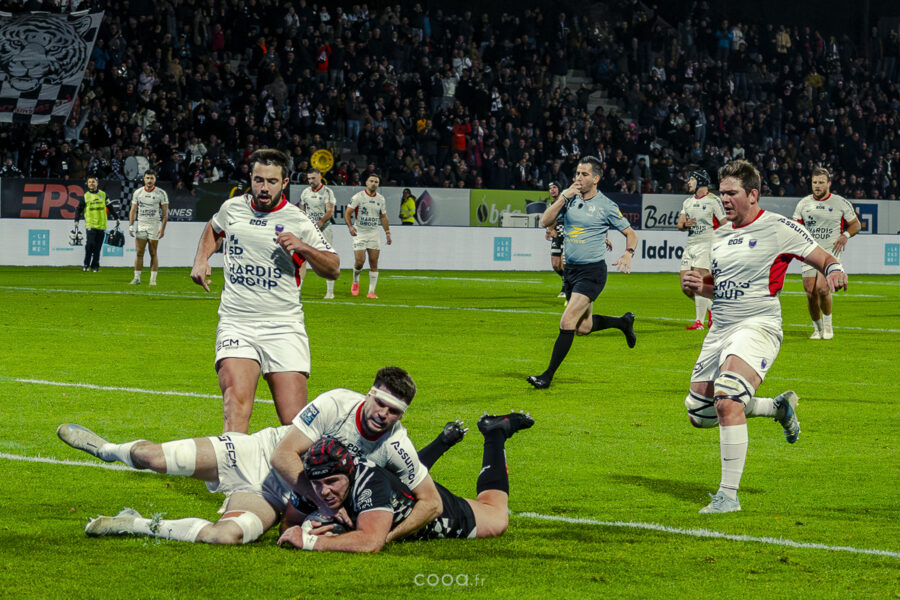 Même si Grenoble réduisait l’écart à la 49e minute grâce à un essai en force signé Sirgel, les Damiers n’ont jamais tremblé. Au contraire, Lucas Méret ajoutait trois points supplémentaires à la 54e minute, puis Randle, entré en jeu quelques minutes plus tôt, inscrivait un essai monstrueux à la 58e minute, traversant quatre défenseurs pour porter le score à 26-15 malgré une pénalité grenobloise précédente.