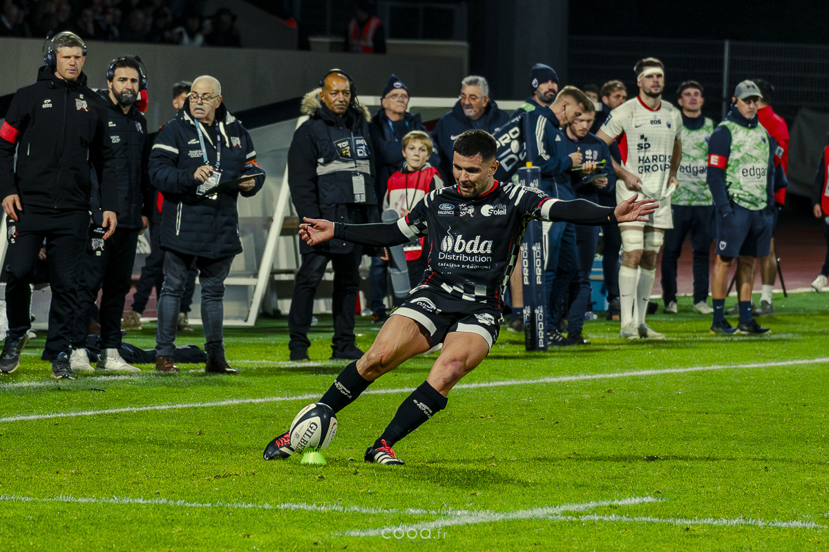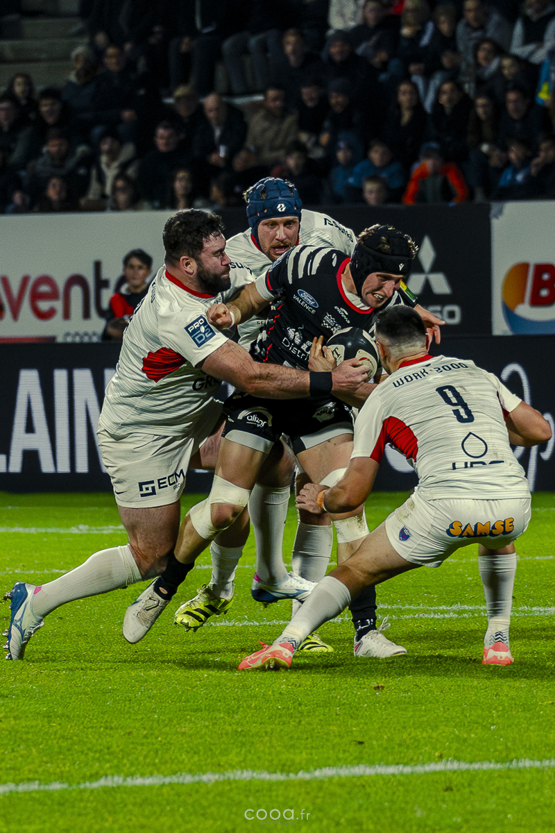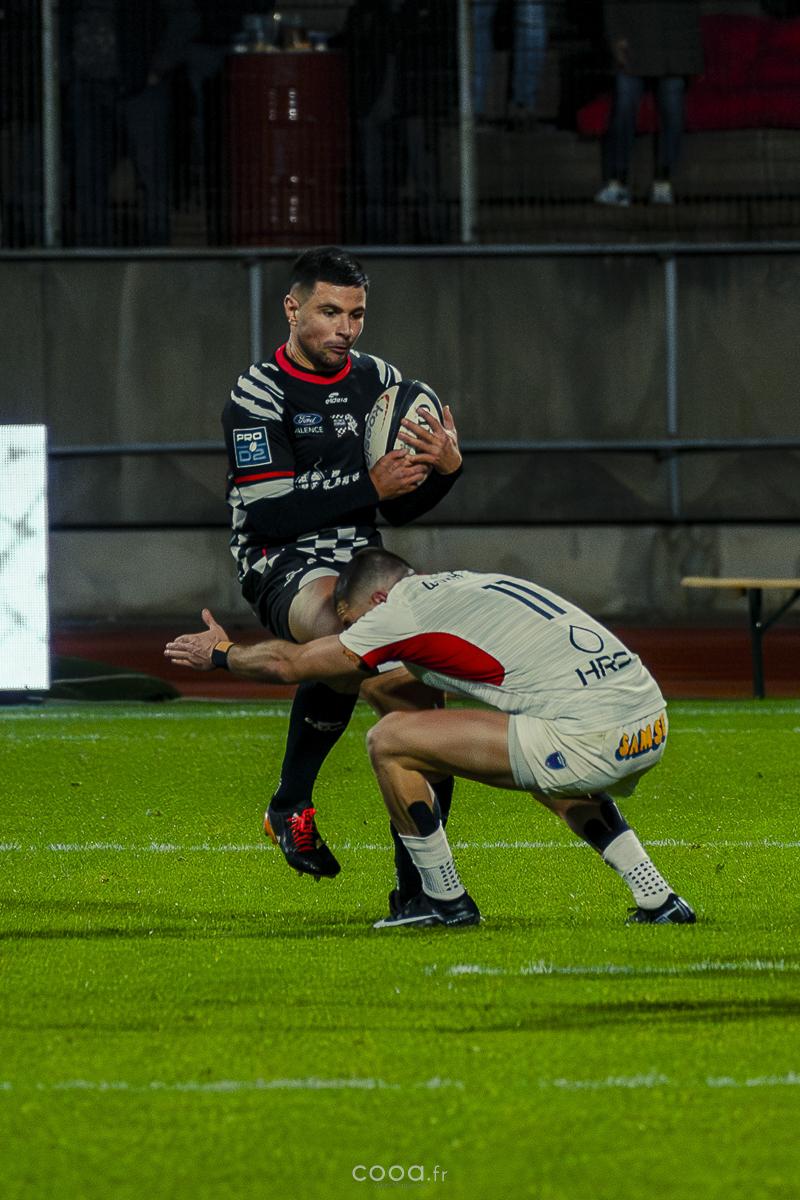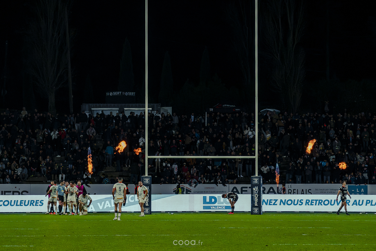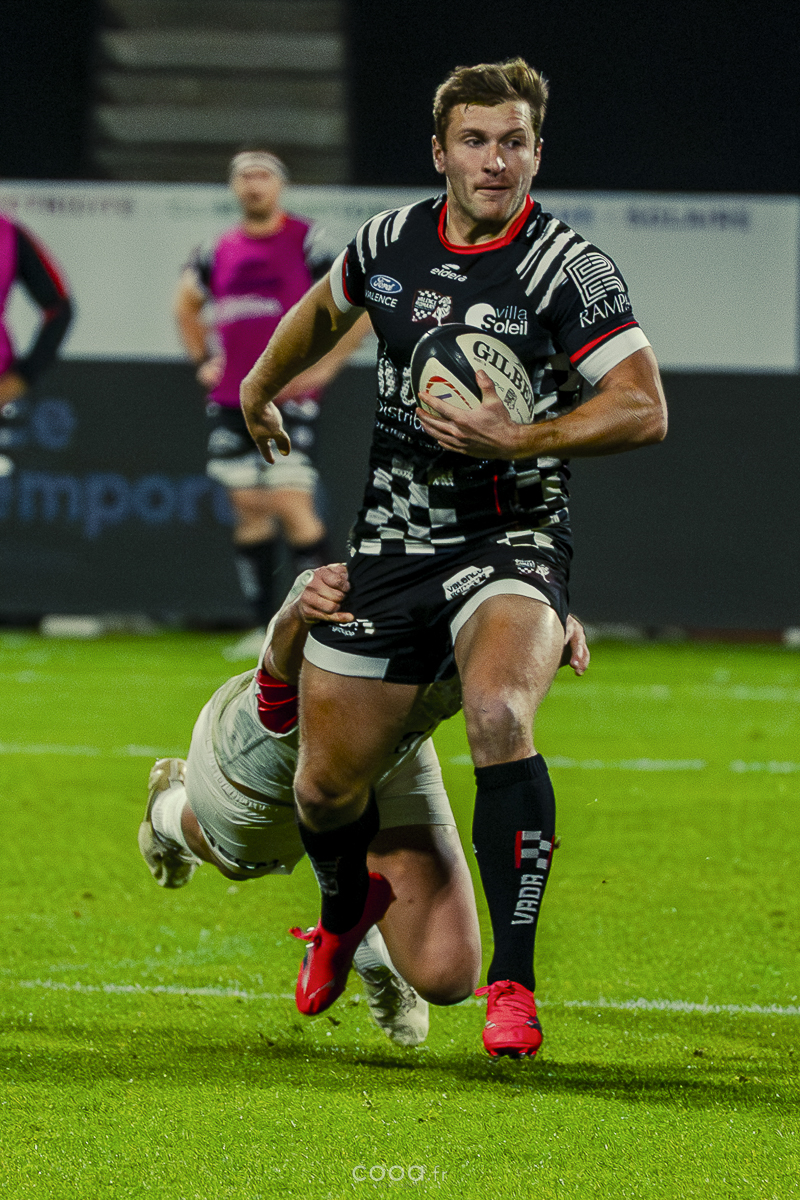 Pendant plus de vingt minutes, Valence Romans a multiplié les temps forts, avançant constamment et repoussant Grenoble dans son camp. Même lorsque les Isérois ont, pour la première fois, pénétré dans les cinq mètres drômois vers la 20e minute, la défense damier a tenu avec autorité. Pourtant, la rencontre a totalement changé de visage à la 28e minute lorsque Barnabé Couilloud a jailli pour intercepter un ballon dans les 22 drômois, lançant une folle contre-attaque de 80 mètres conclue par Costa-Storti. Bien que la transformation ait heurté le poteau, cet essai a relancé Grenoble et redynamisé le derby.