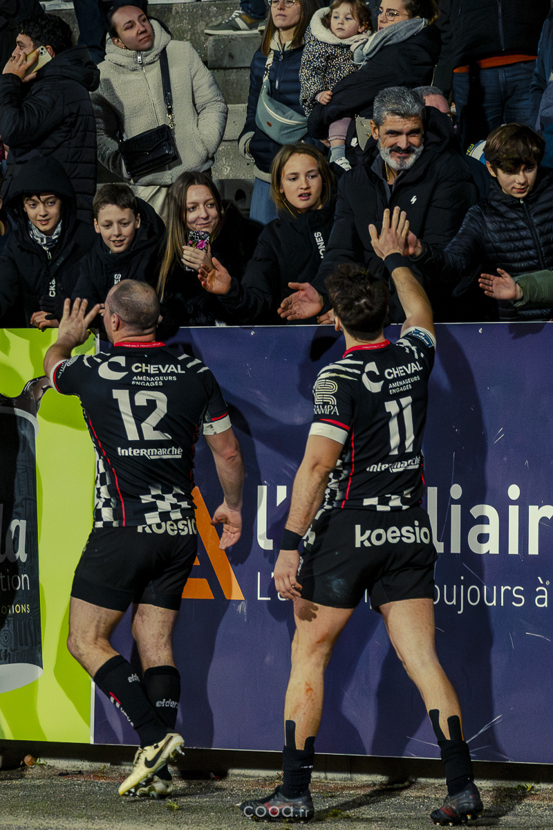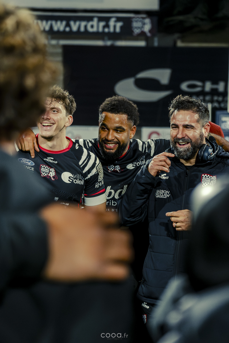Le coup de grâce arrivait à la 65e minute lorsque, sur une touche à cinq mètres, le ballon porté du VRDR avançait encore une fois avant que Thomas Lhusero n’aplatisse derrière la ligne. Avec 33-15, les Damiers scellaient définitivement le sort du derby. Même réduits à 14 en fin de rencontre après l’avertissement adressé à Louis Marrou à la 74e minute, les locaux ont contrôlé la fin du match sans jamais reculer.